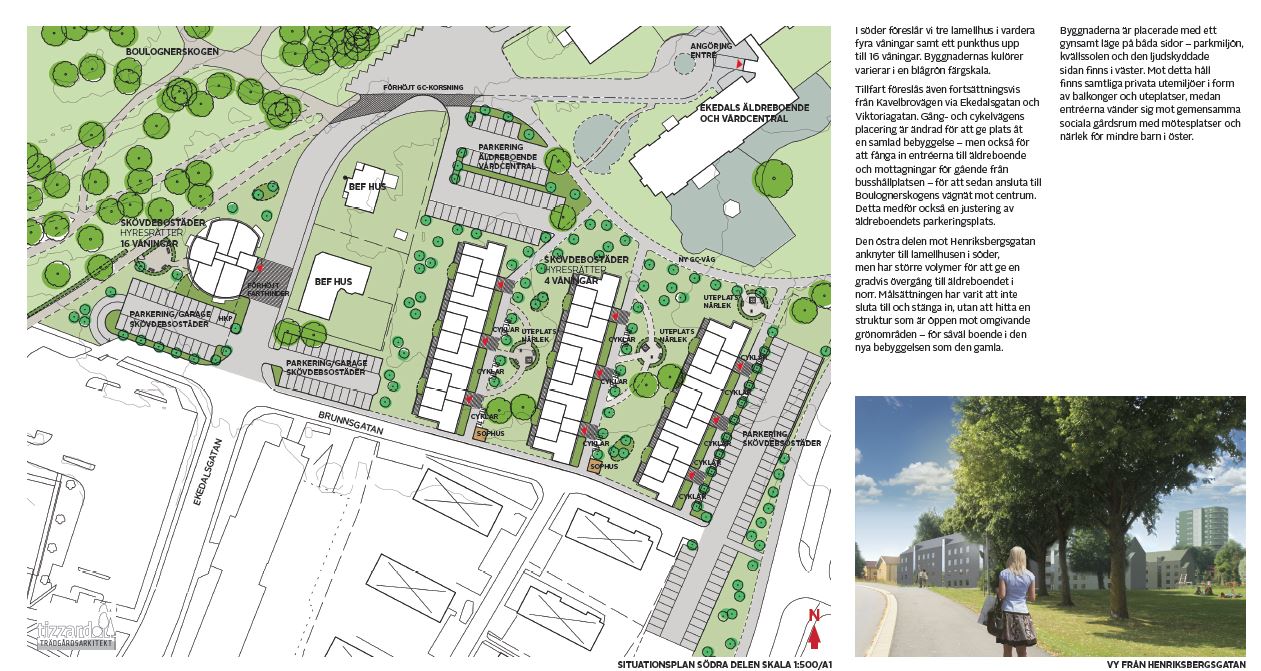 Målsättning har varit att skapa ett varierat utbud av bostäder - små och stora- billiga och lte mer påkostade - för yngre och äldre - samt ett gruppboende med sinnesträdgård och direkt anknytning till parken rogivande grönska.
