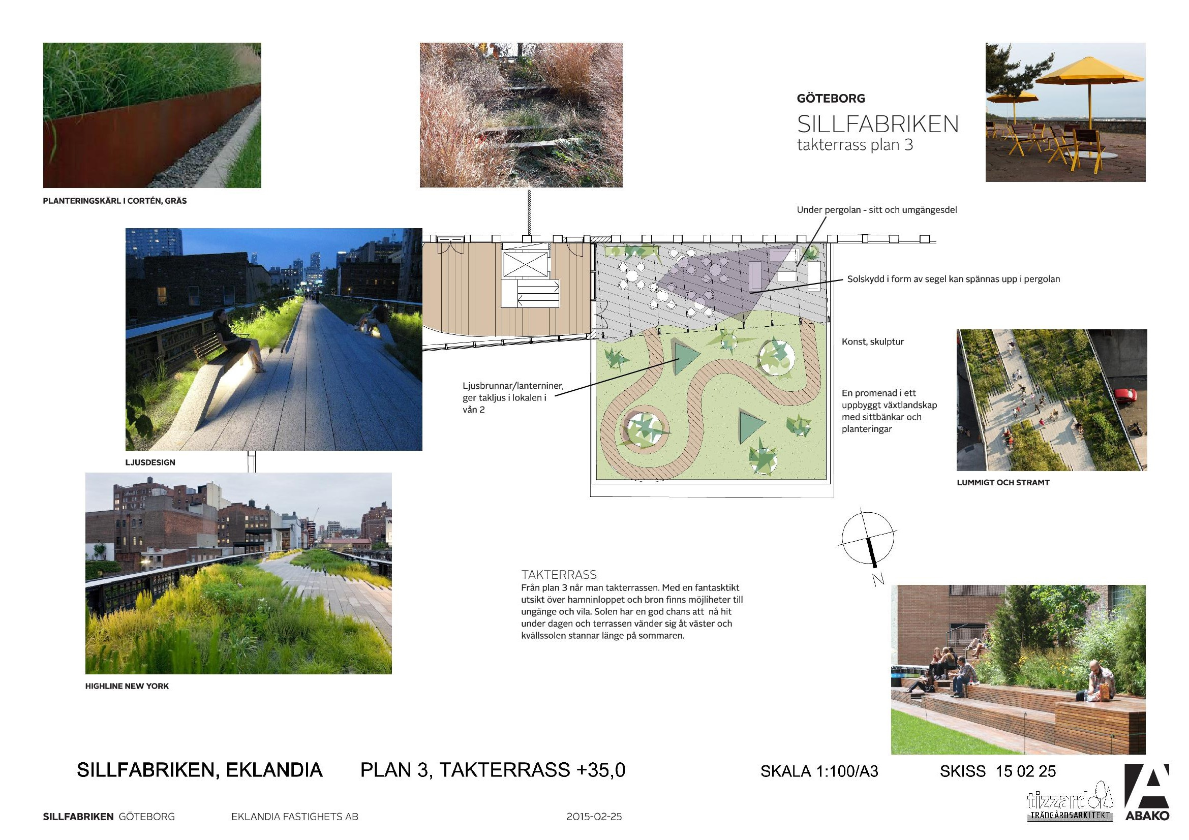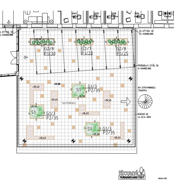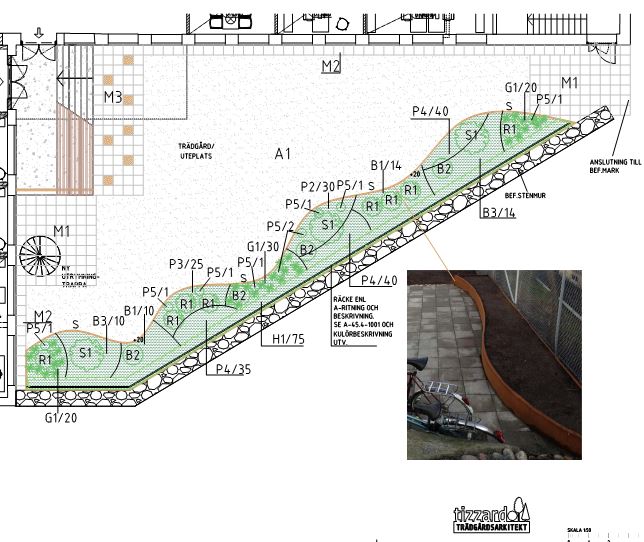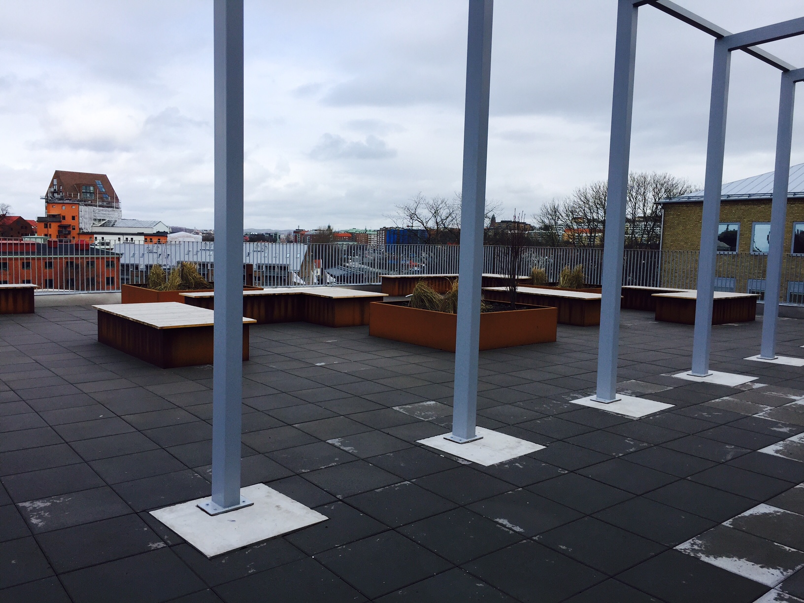 Design och projektering på utemiljön. Trädgård/uteplatsen samt Takterrass