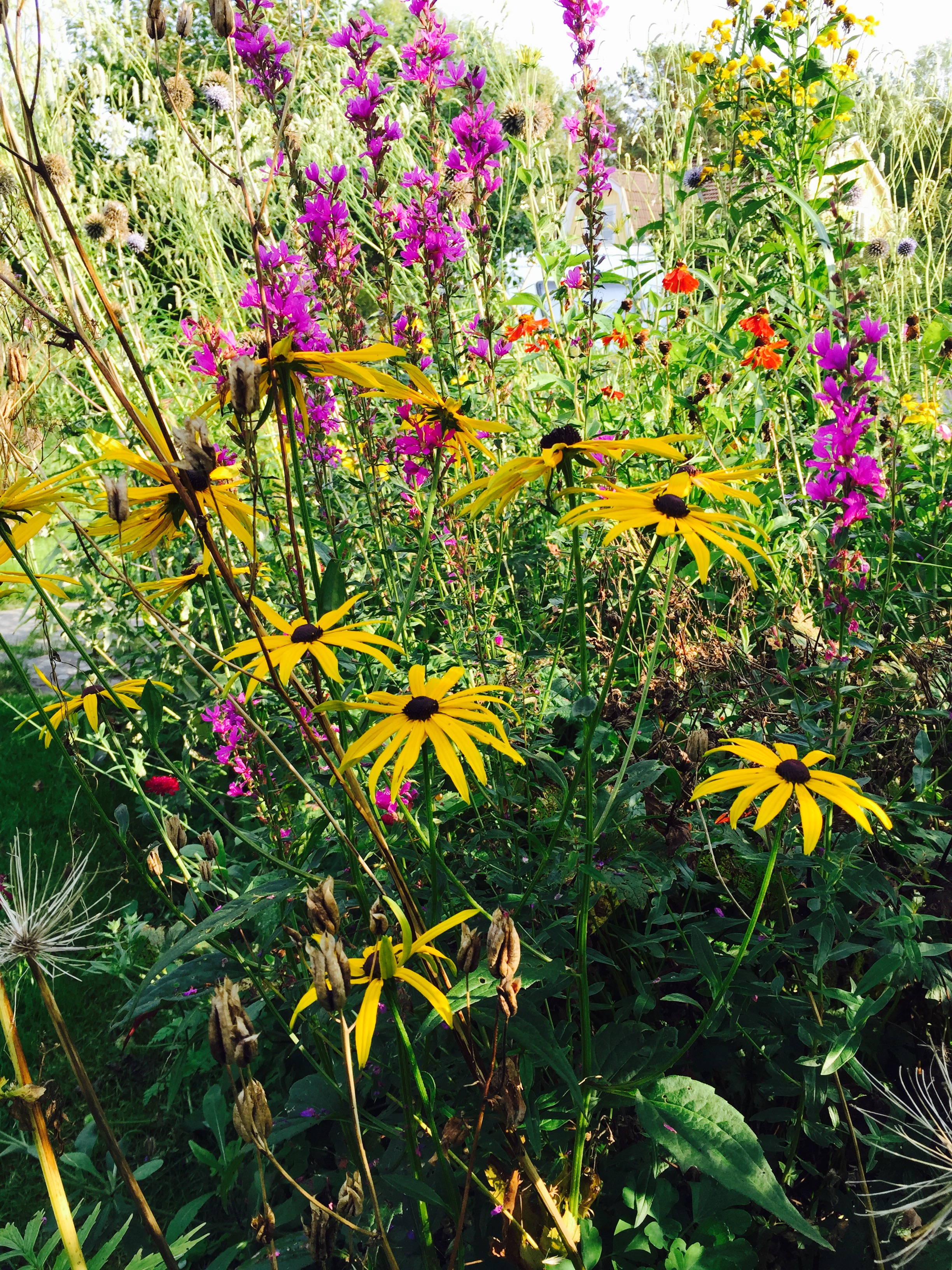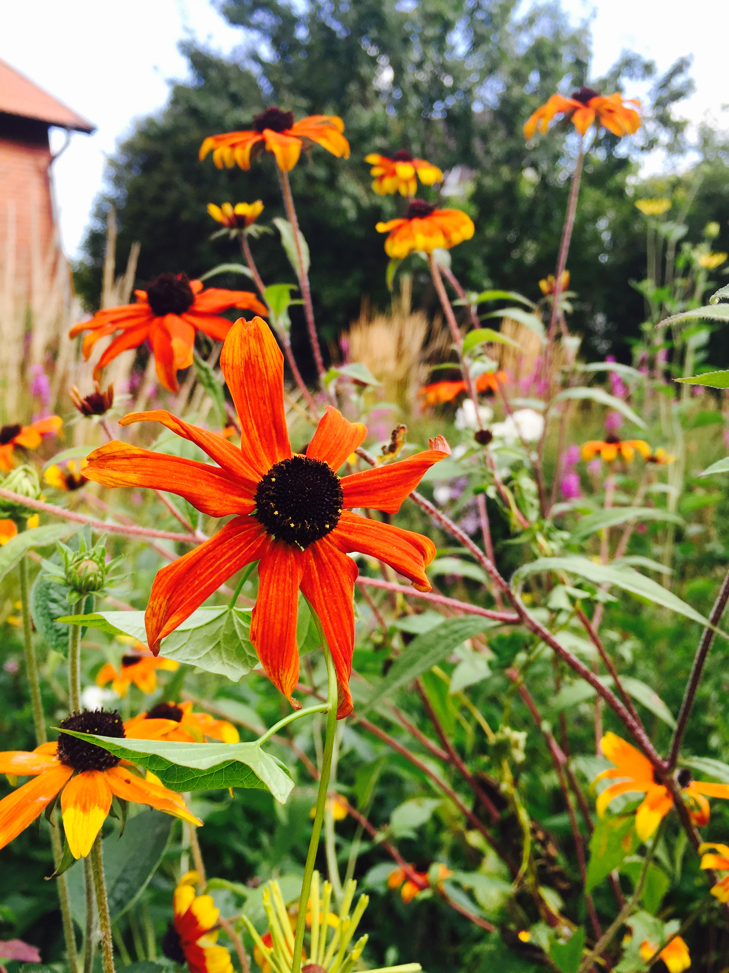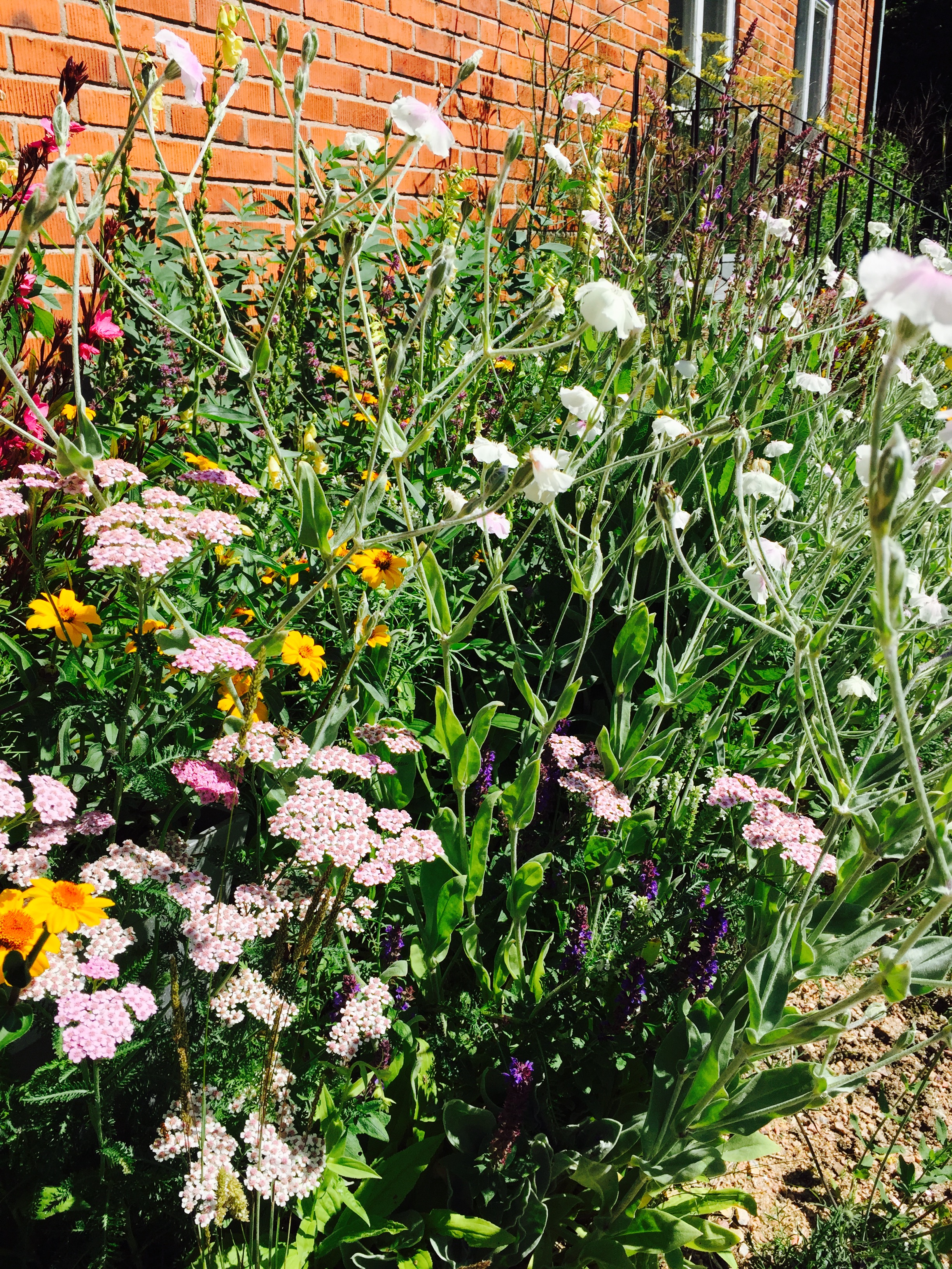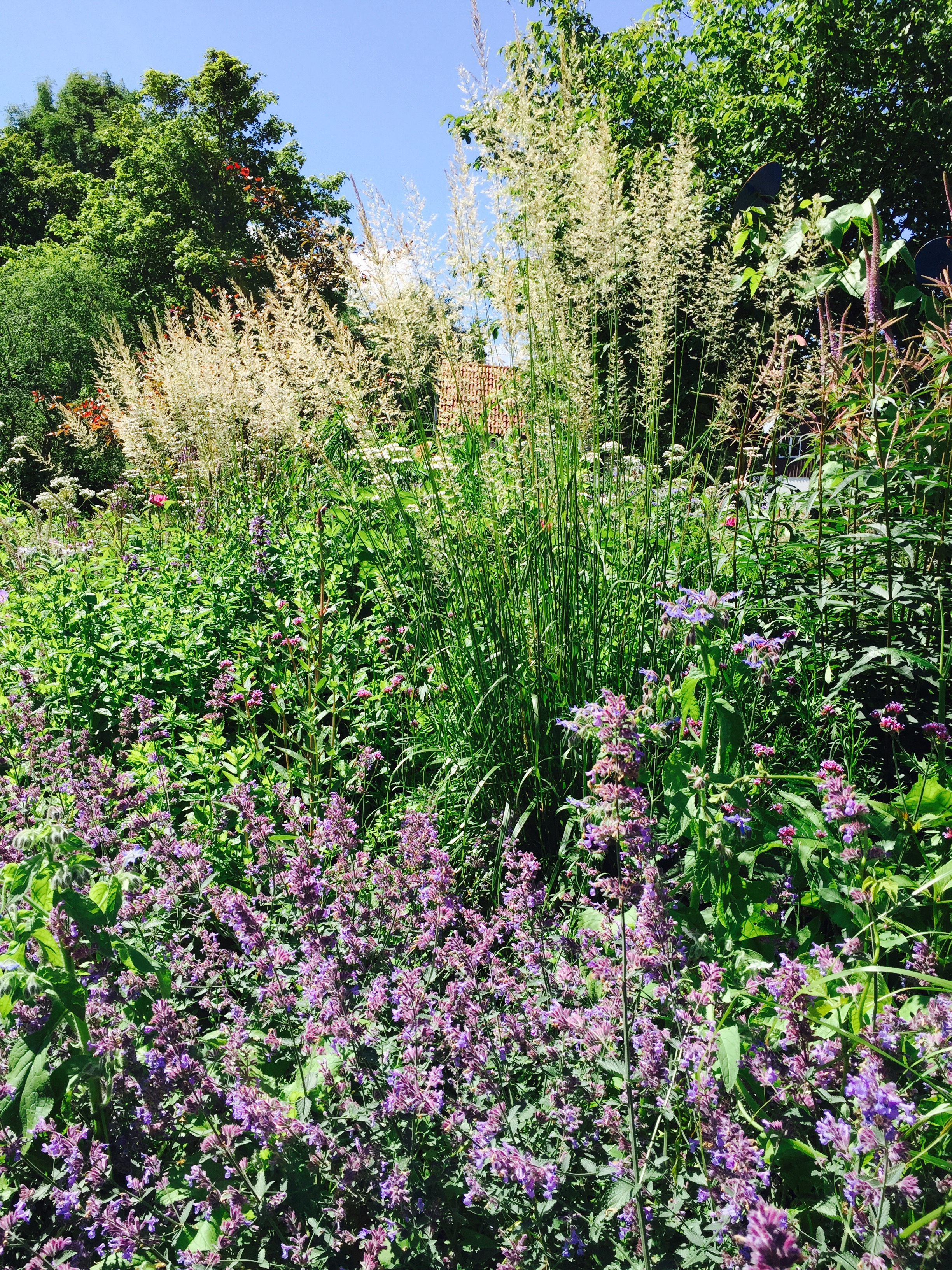 Ny framträdgården. Gräsmattan tas bort och planterad med mycket perenner, prydnadsgräs och vårlökar. Lågskötsel plantering som ger färg och form året om.