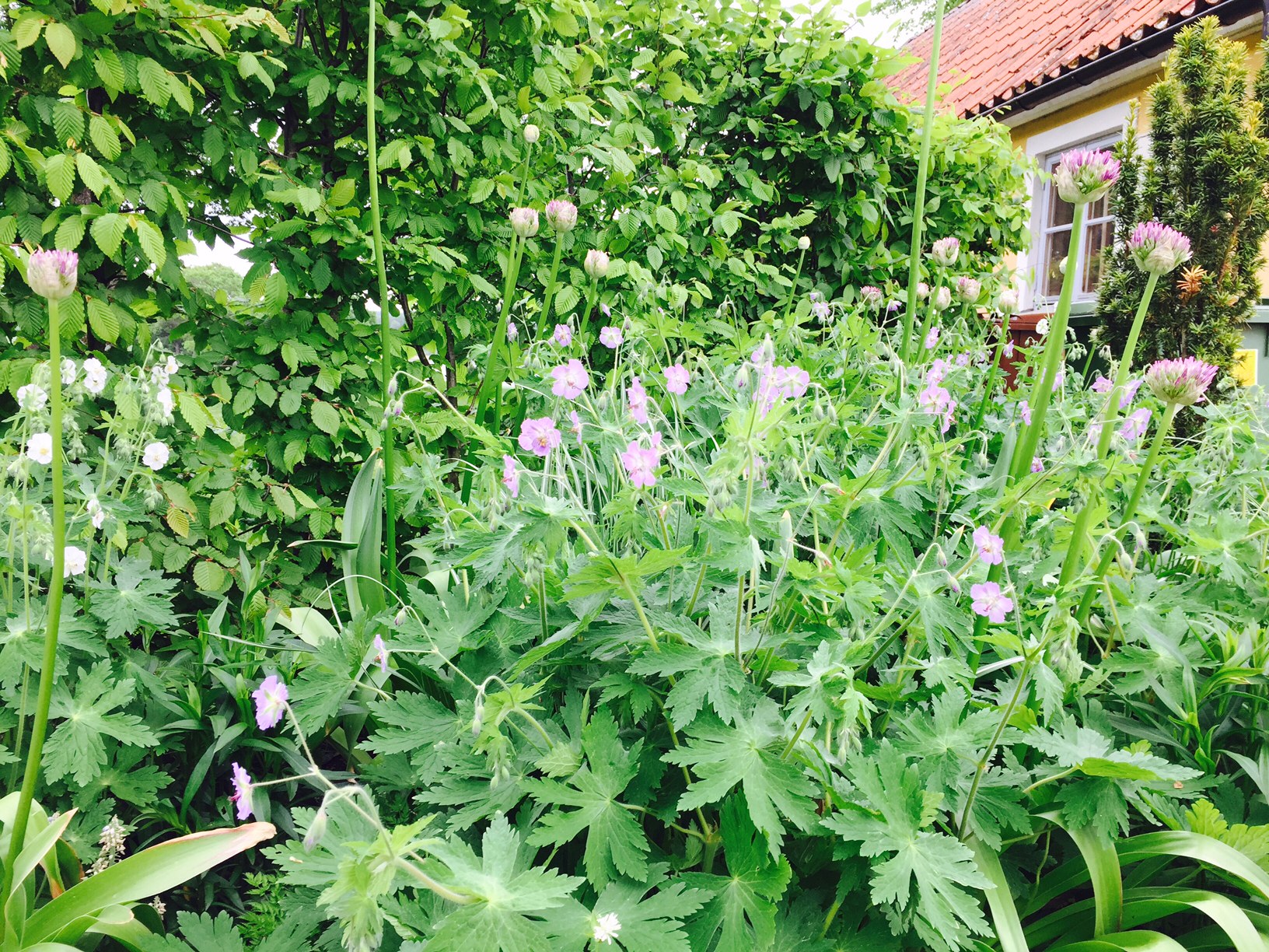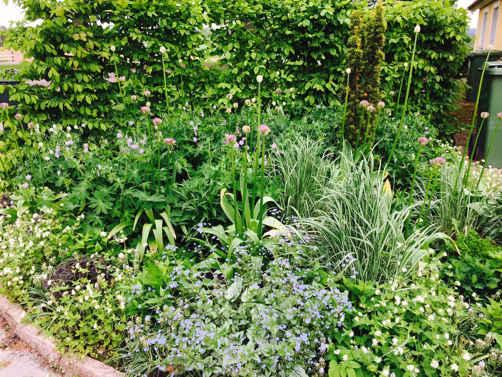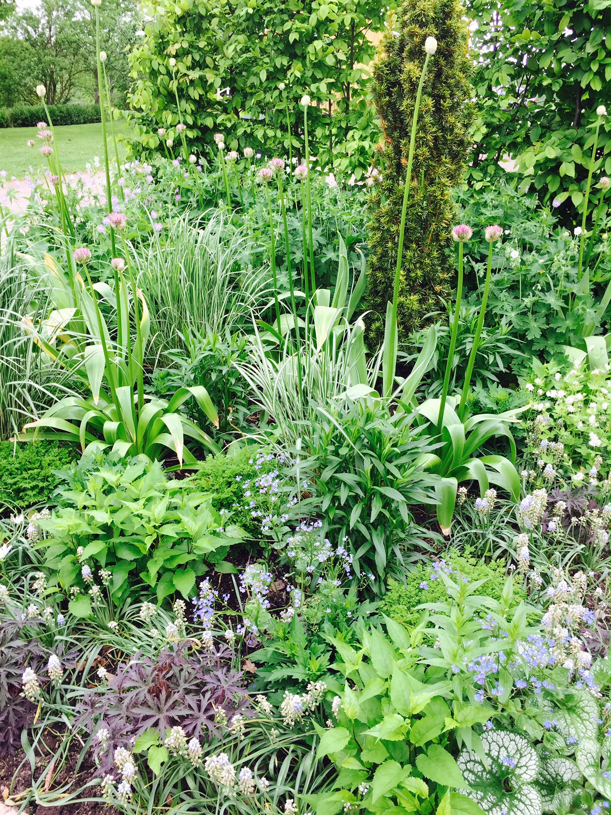 Blandingar mellan perenner, prydnadsgräs och vårlökar.