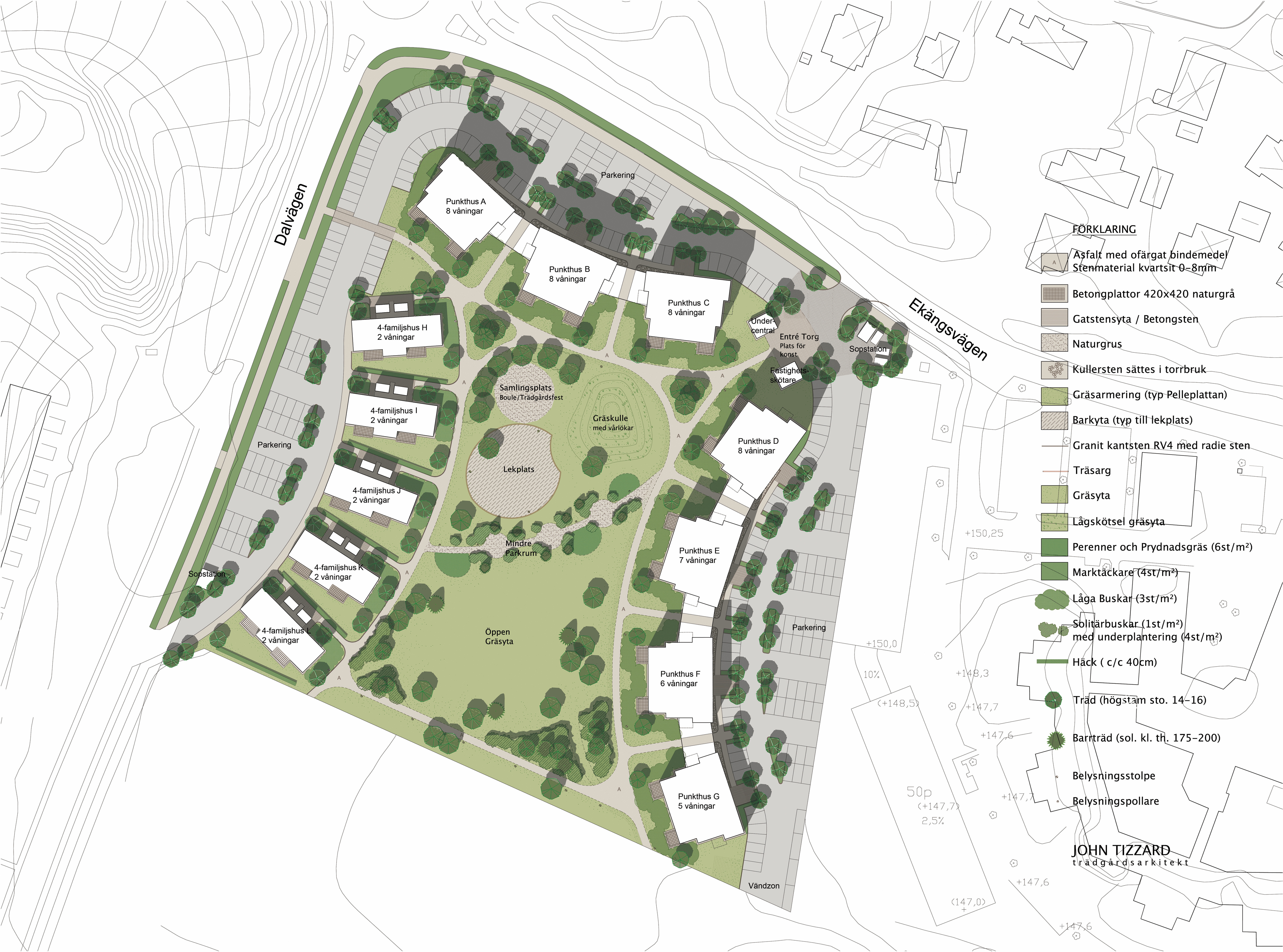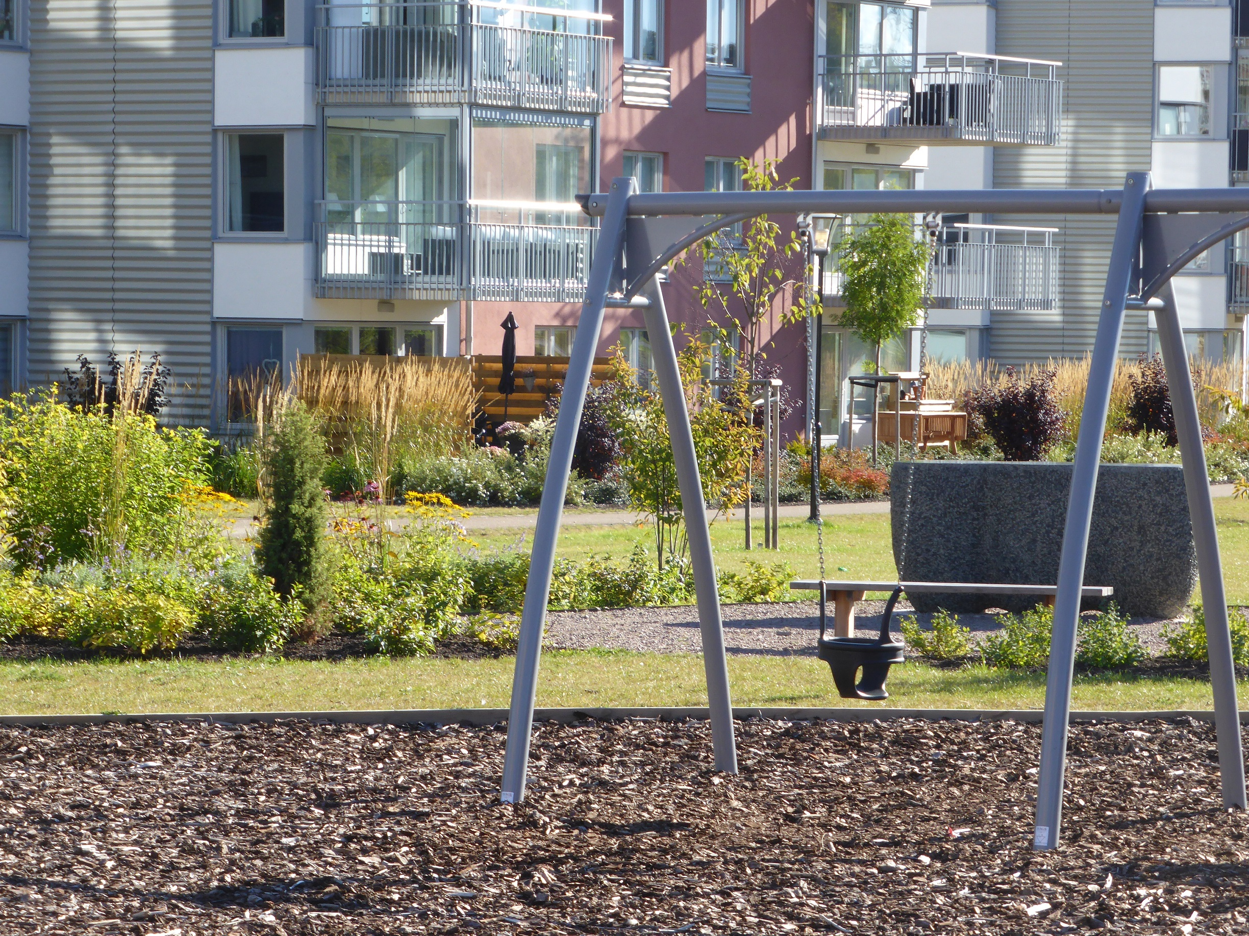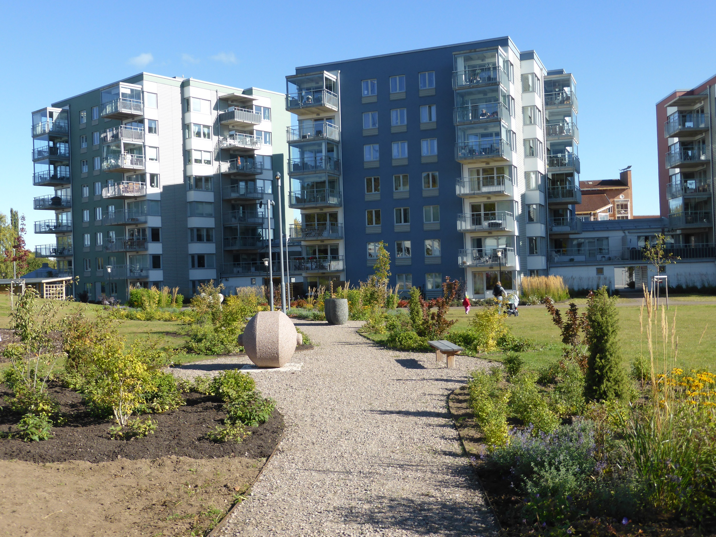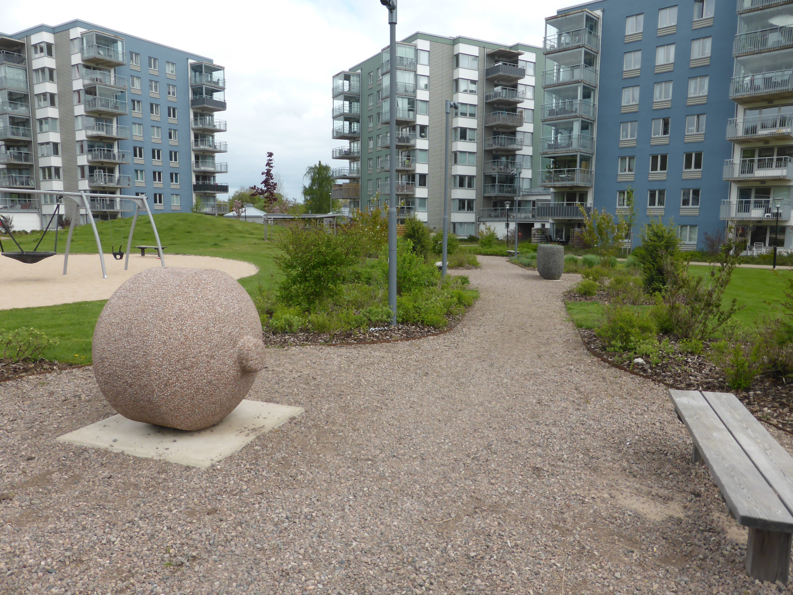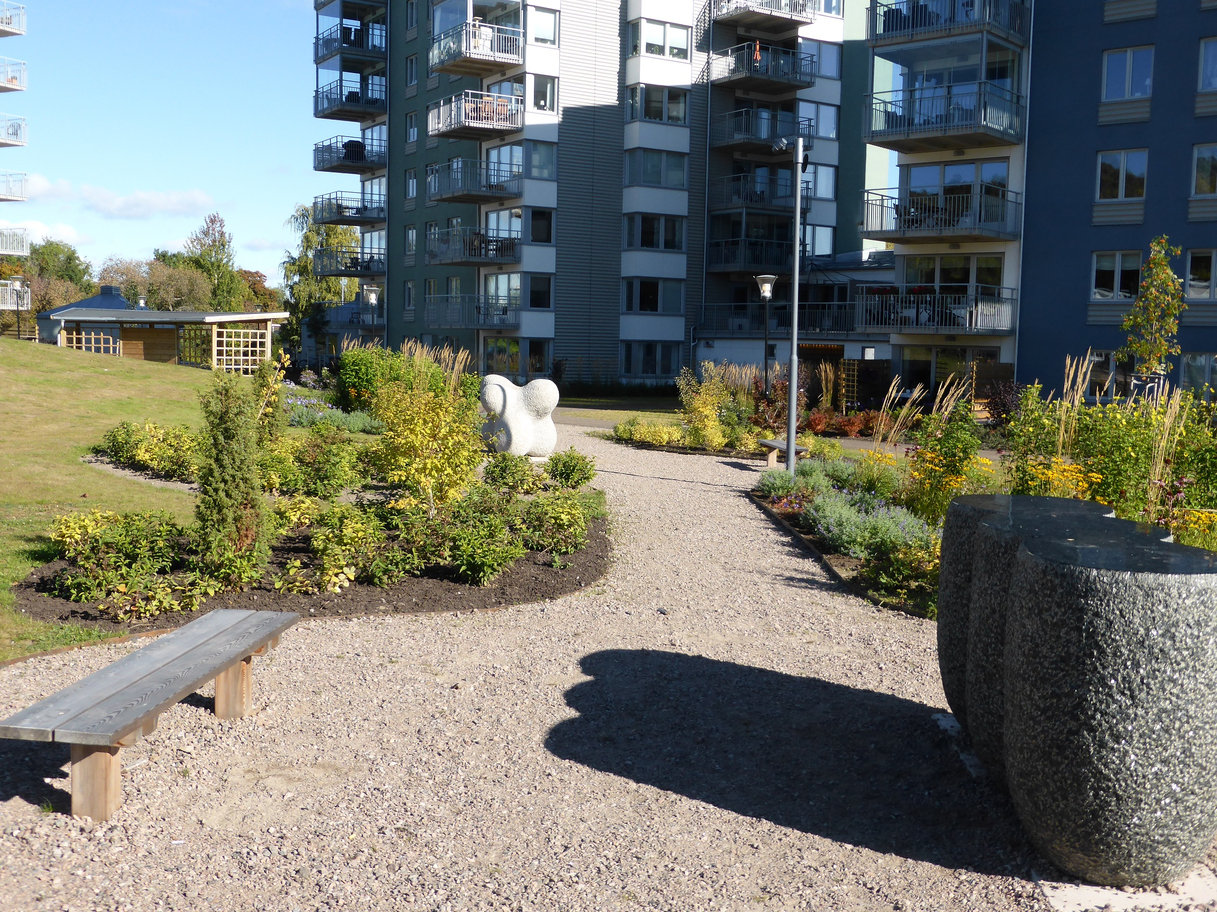 Parken är utformad med stor omsorg för att skapa en intressant, stämningsfull och inbjudande utemiljö för både boende och besökande.