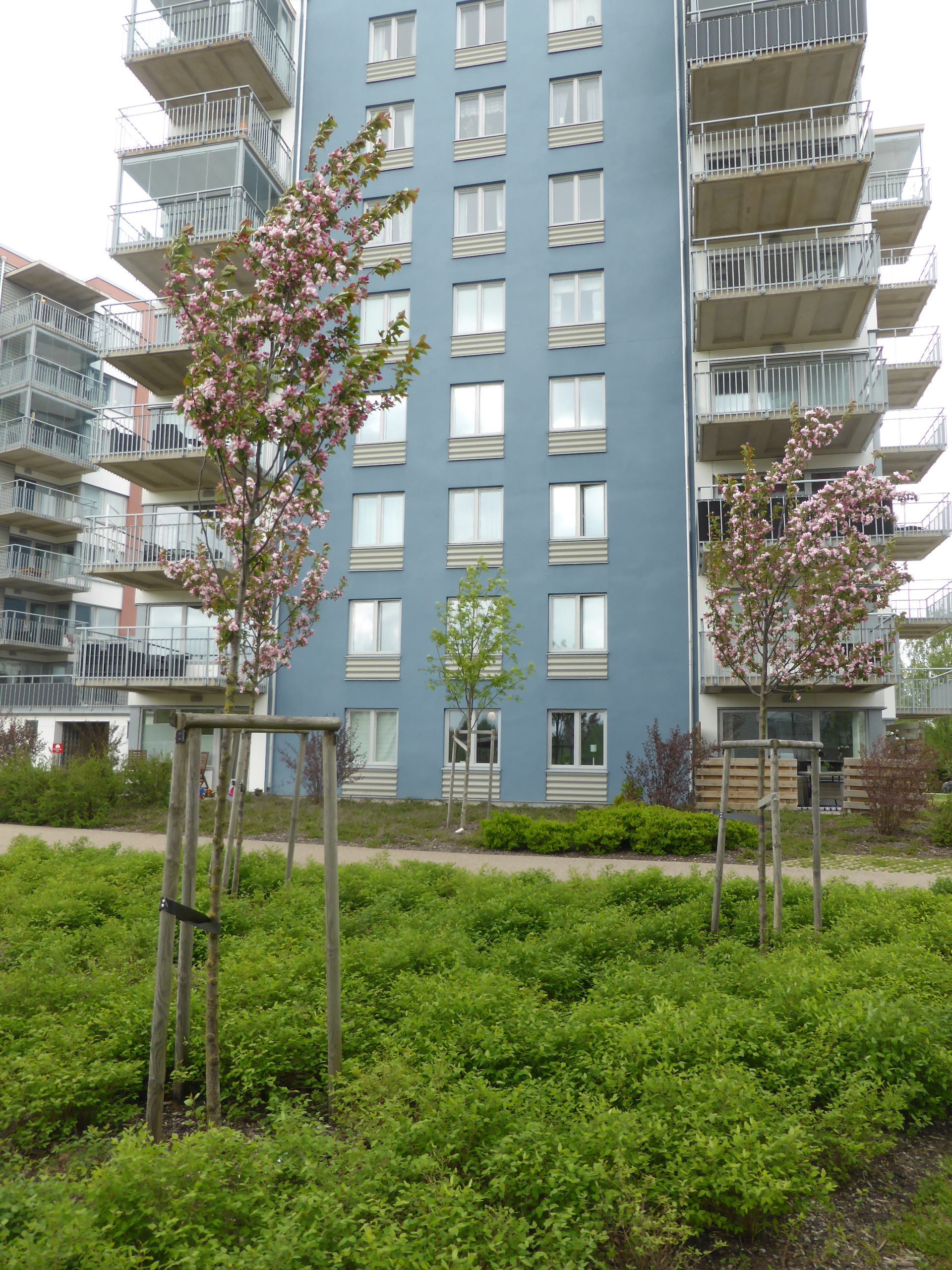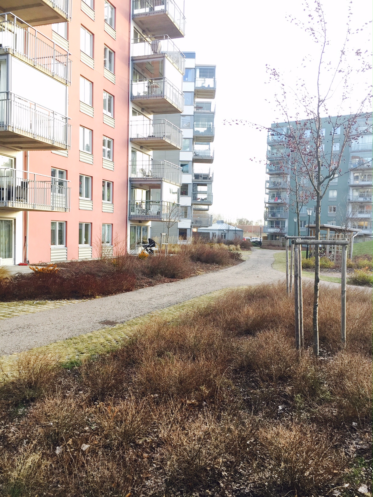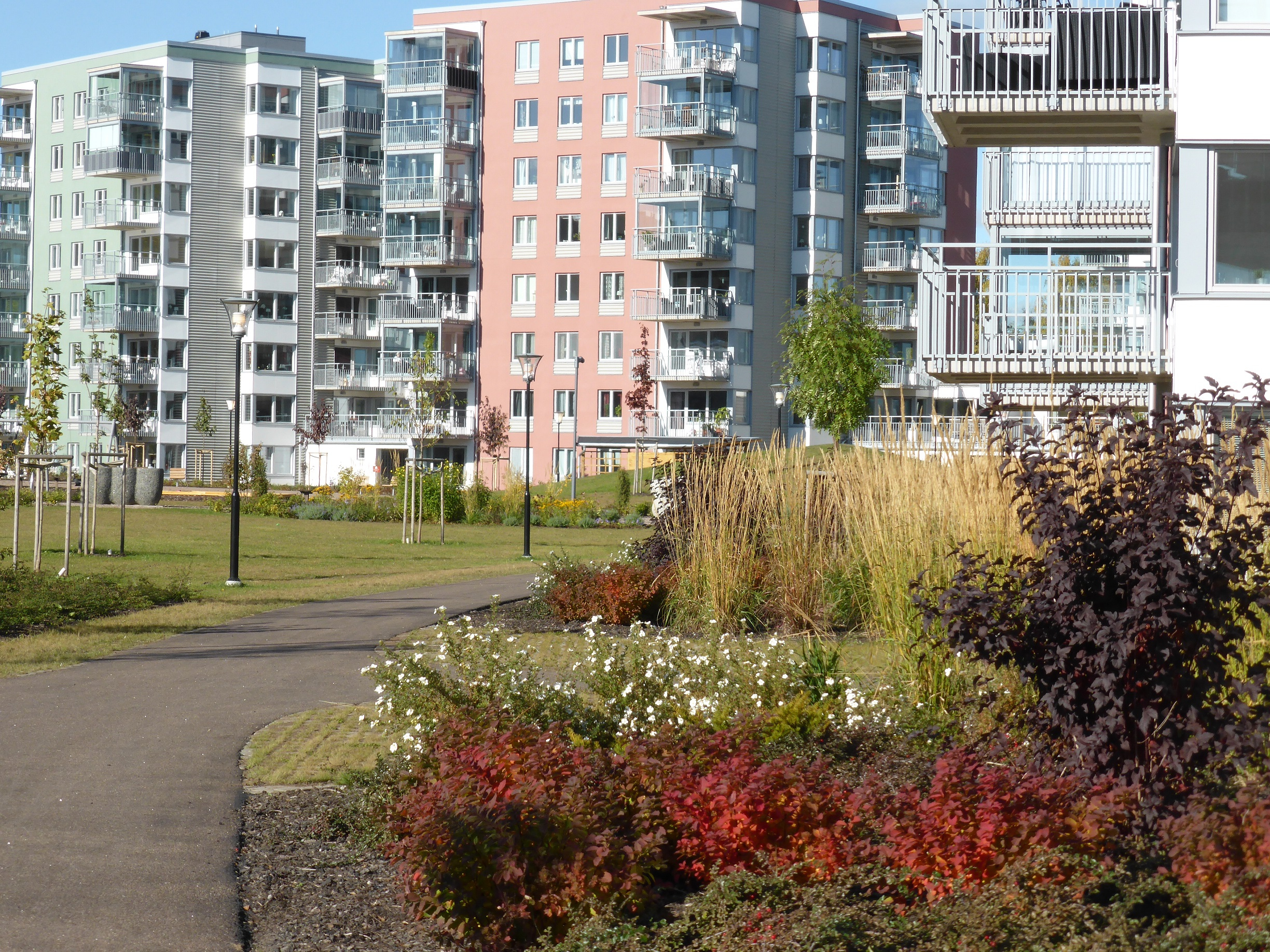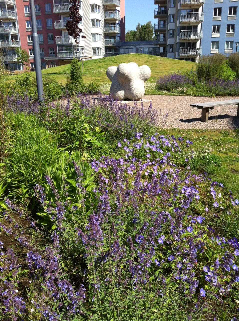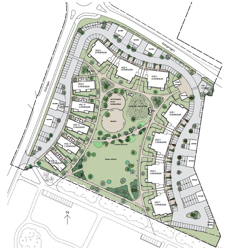 Parken är utformad med stor omsorg för att skapa en intressant, stämningsfull och inbjudande utemiljö för både boende och besökande.