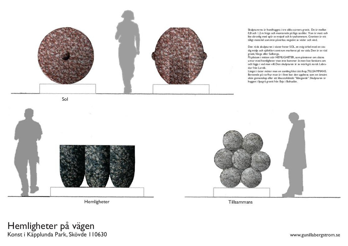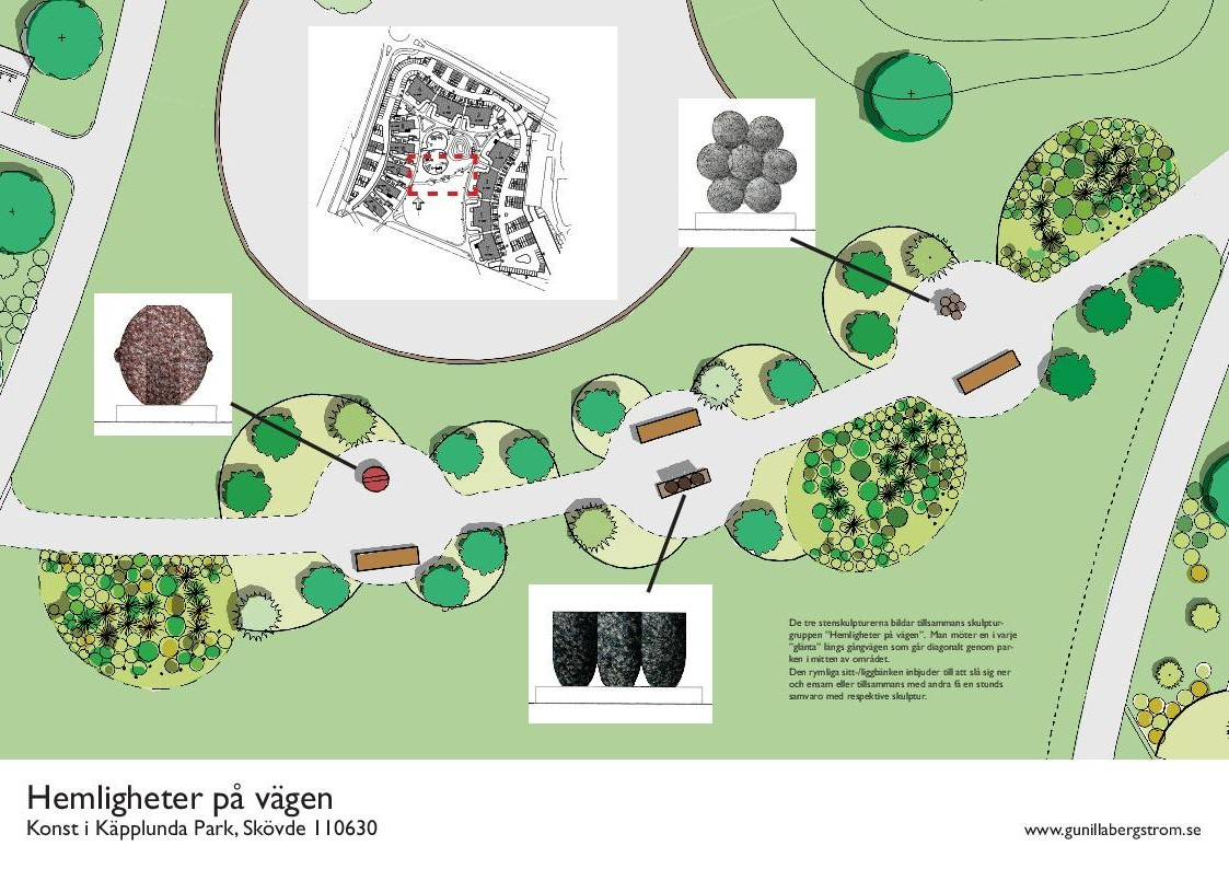 Konst i parken `Hemligheter på vägen´ av Gunilla Bergström