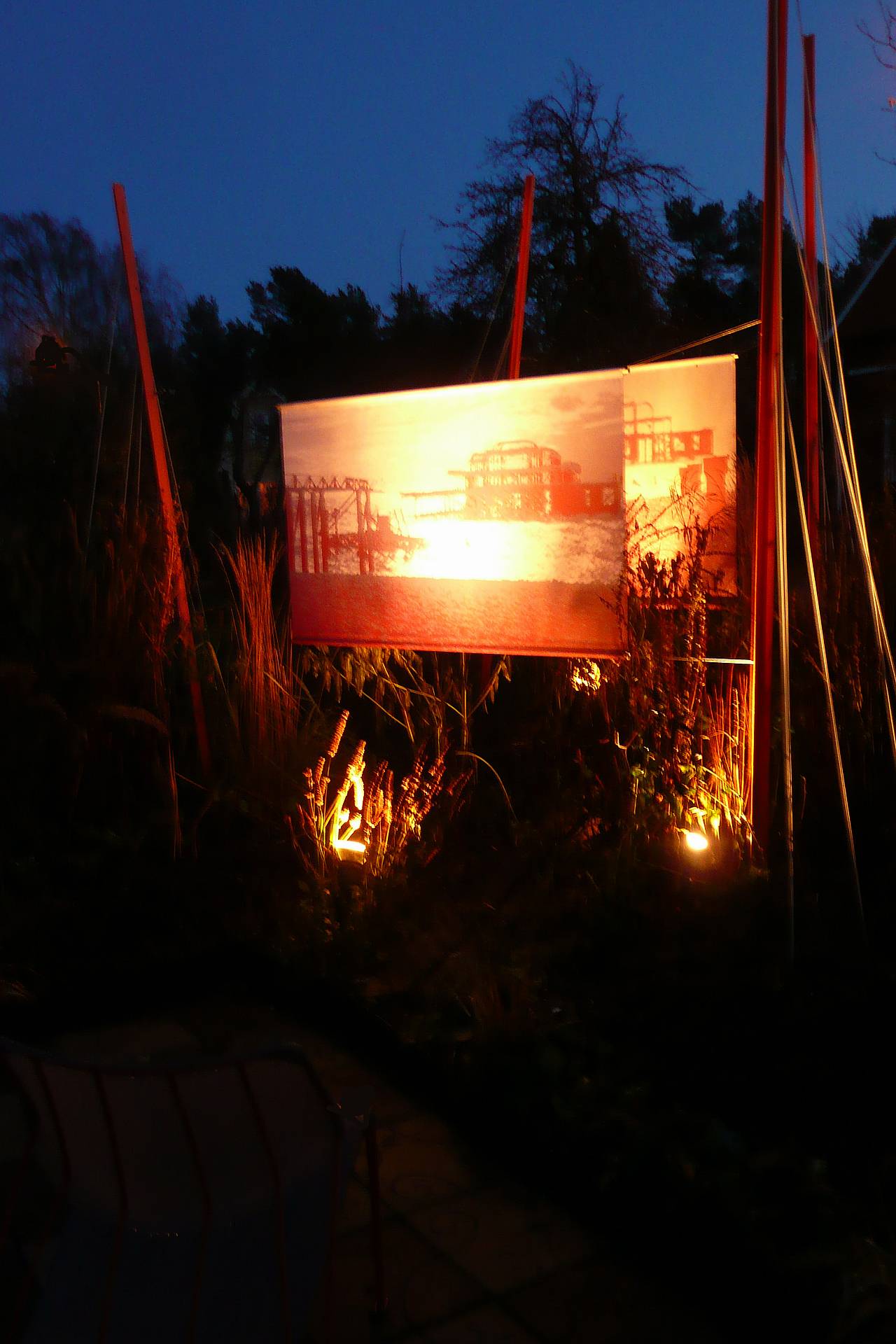 Gunnebo utställningsträdgård återskapas i privat regi. Trädgårdsåtervinning på högsta nivå! Stålstolpar ger höjd och vertikal accent i trädgården och är utmärkta som stöd för klätterväxter. Fotoimages flyter över trädgården och skapar en extra dimension med spännande belysningsmöjligheter kvällstid.