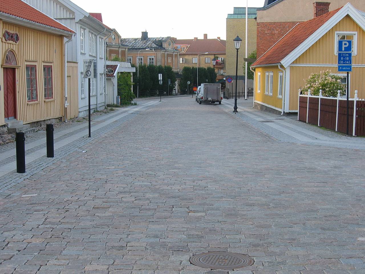 Turiststråk och en av de äldsta stadsdelarna i Vänersborg. Befintlig asfaltsyta borttagen och ersatt av mer traditionell storgatsten och granithällar.