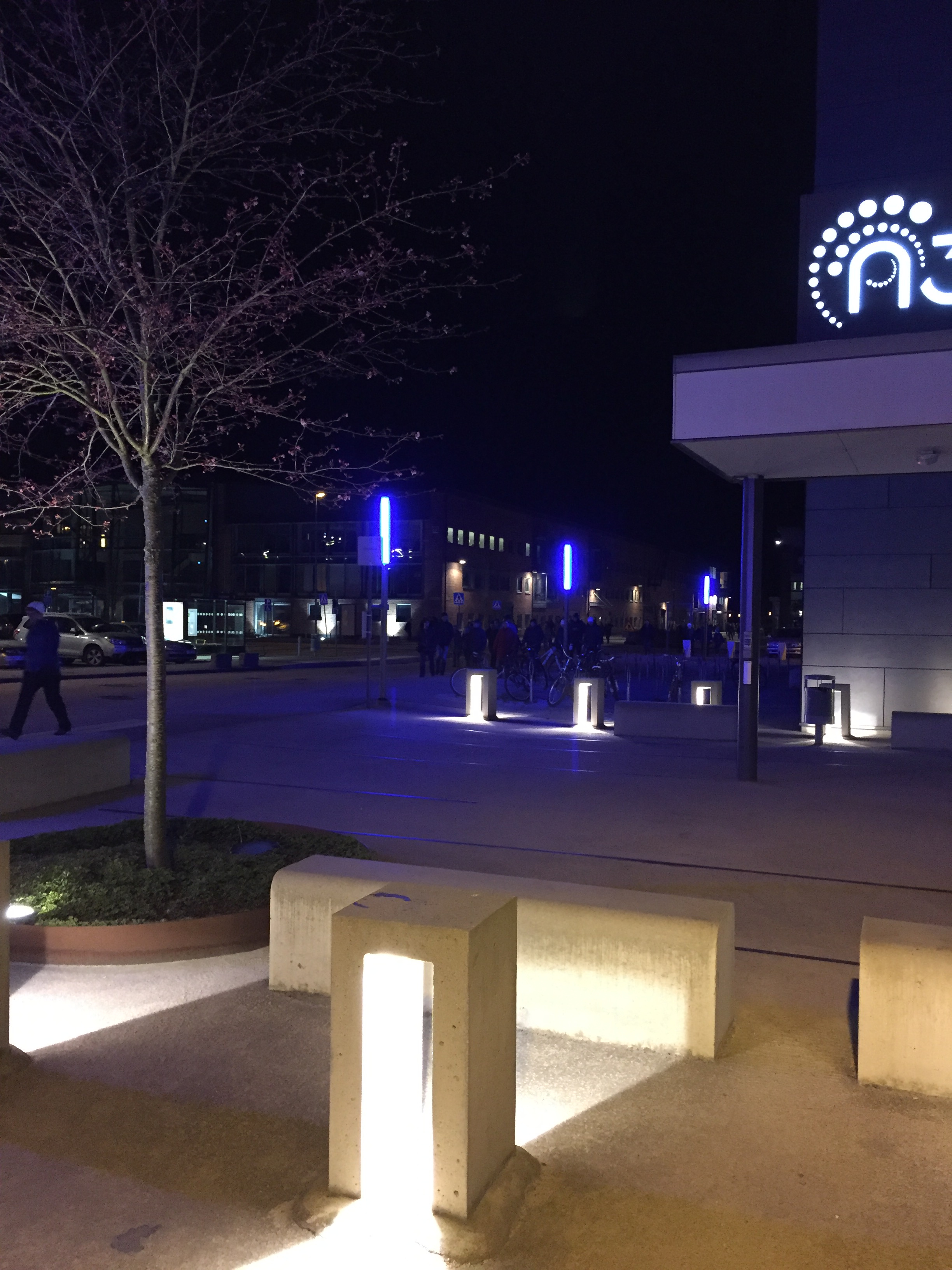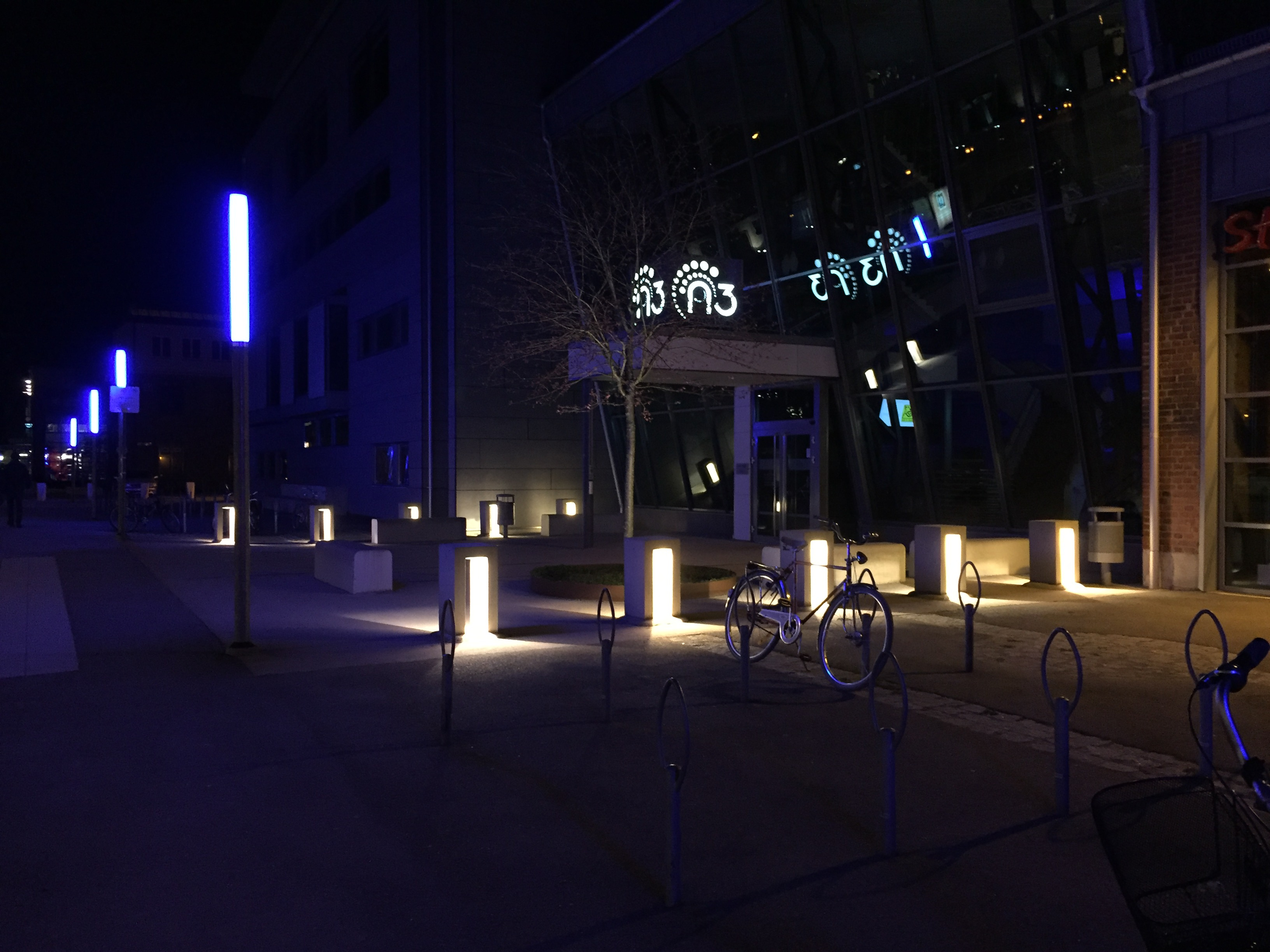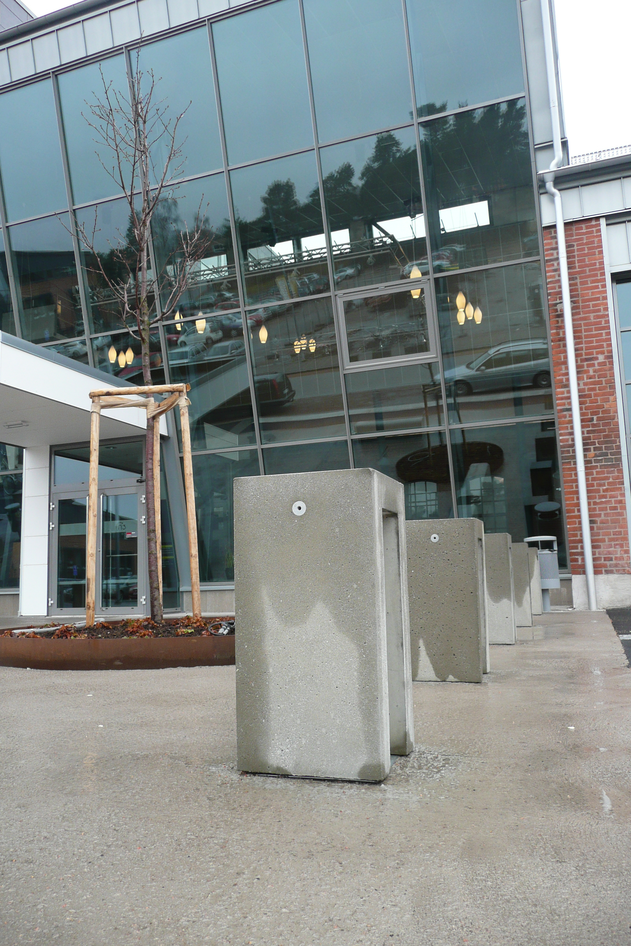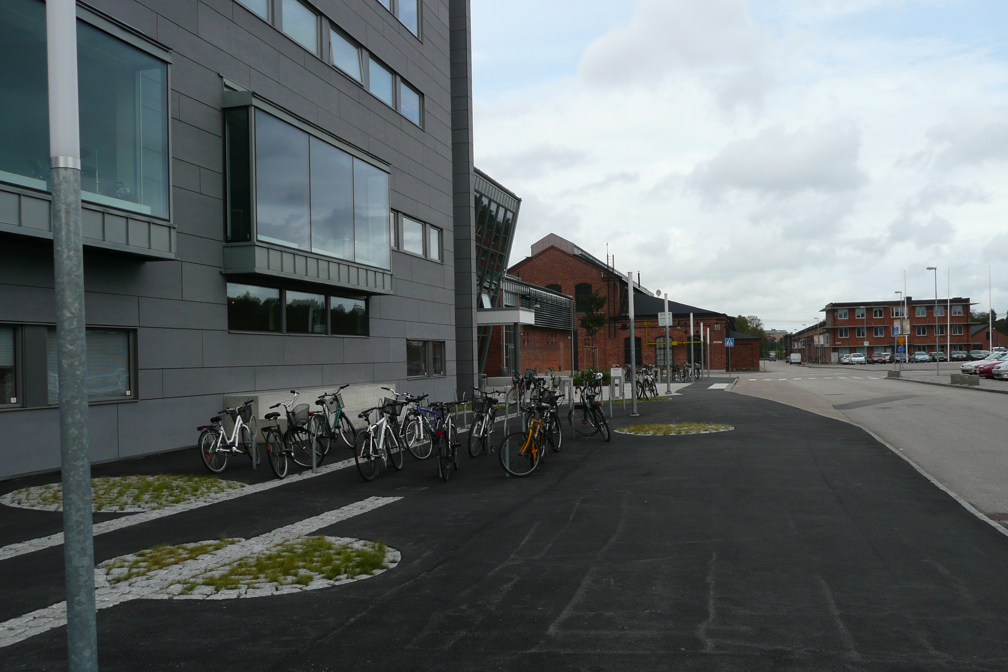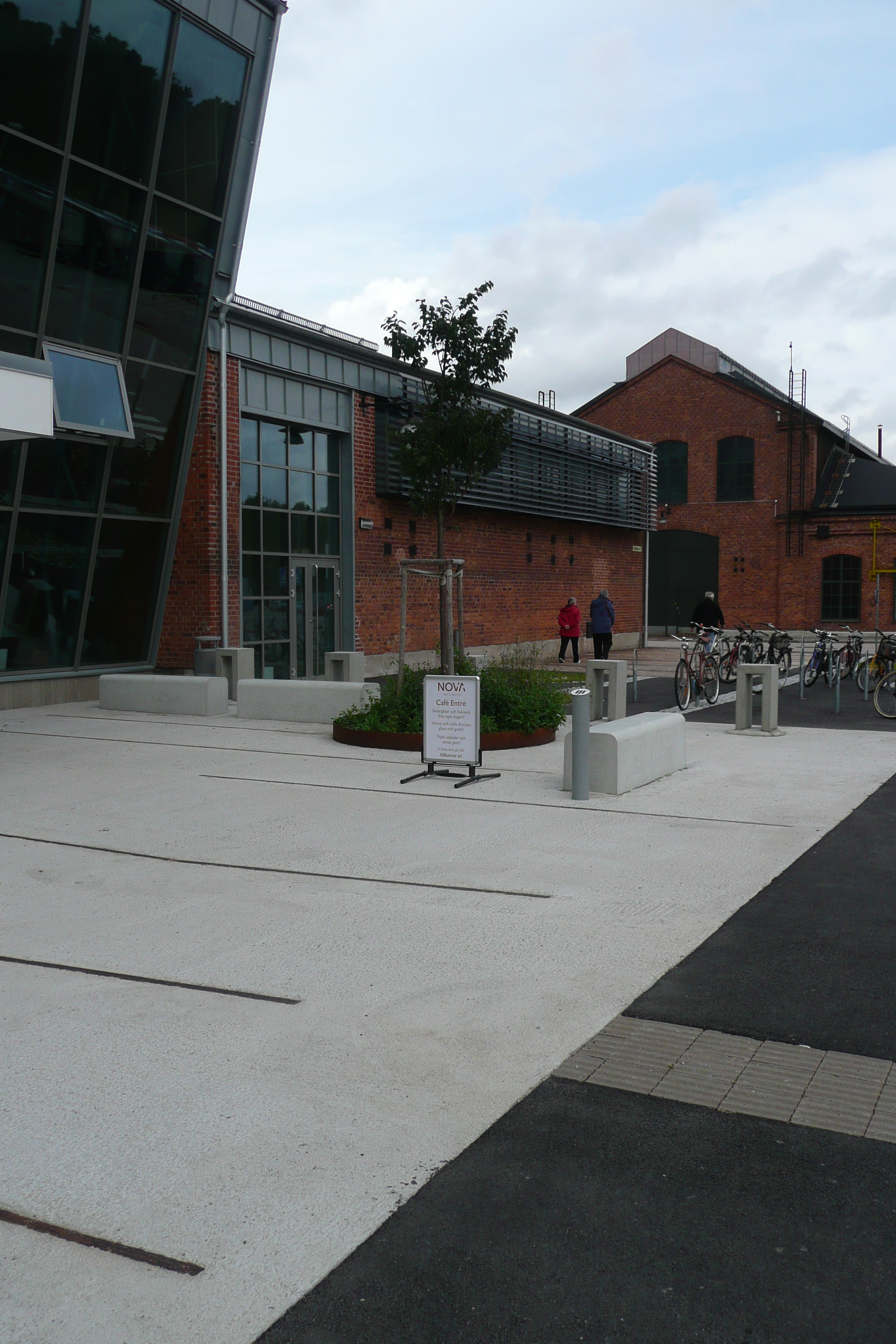 Markytor består av asfalt och betong. Det är ett före detta industriområde och detta tas upp i form av spår från historien som bryter igenom den nya anläggningen i form av tågräls och storgatsten med gräsfog.