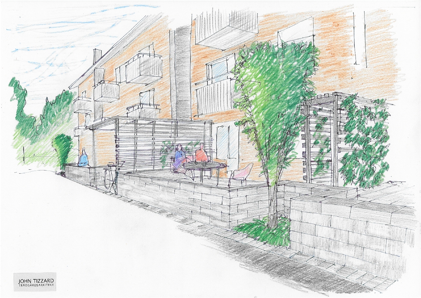 Upprustning av uteplats med enkel materialval som ger en helhets lösning.