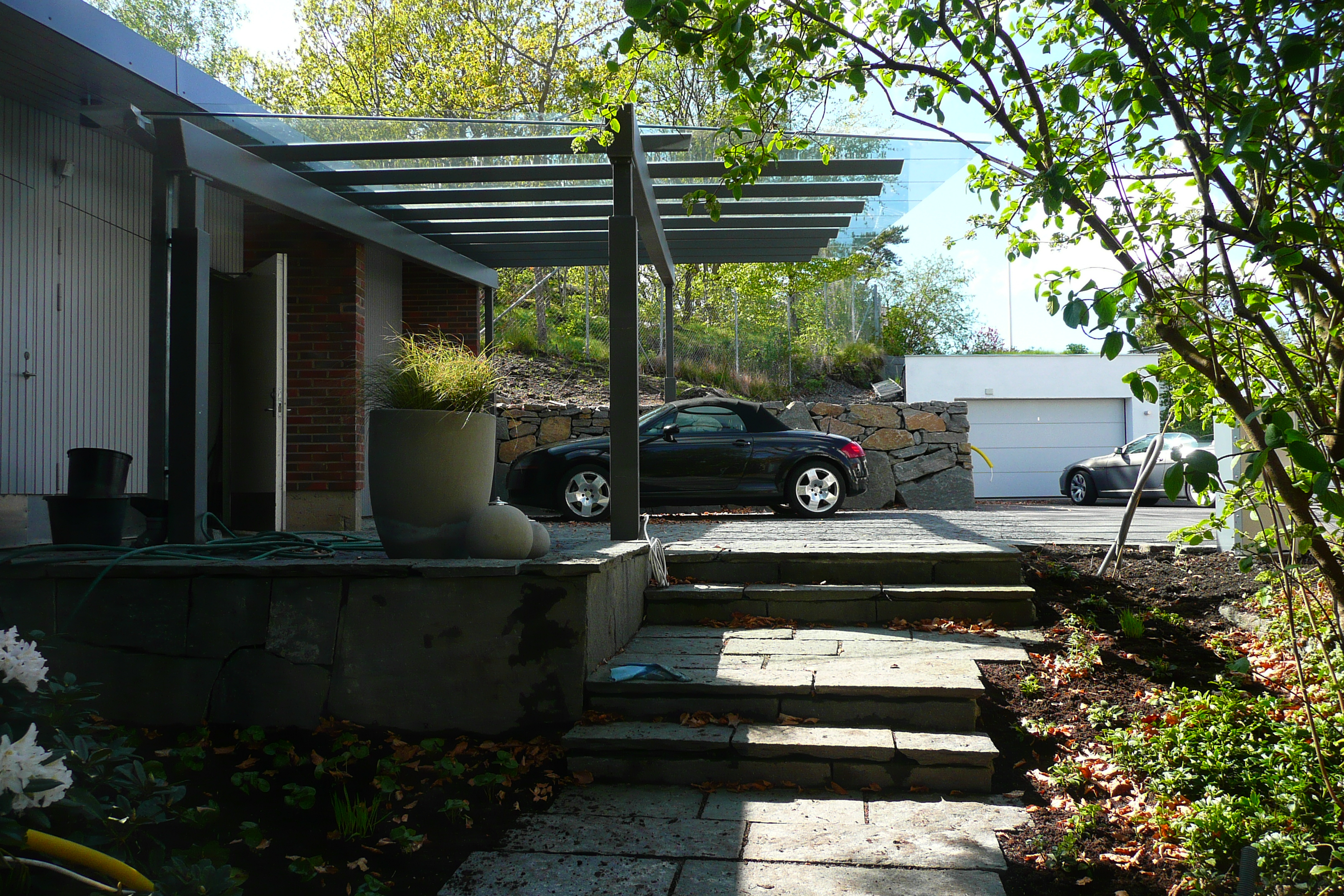 Uppgradering av plantering och hårdytor vid huvudentré.